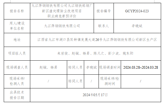 上一篇:九江萍鋼鋼鐵有限公司九江鋼鐵煉鋼廠老區(qū)渣處理除塵改造項(xiàng)目 職業(yè)病危害預(yù)評價GCYP2024-021