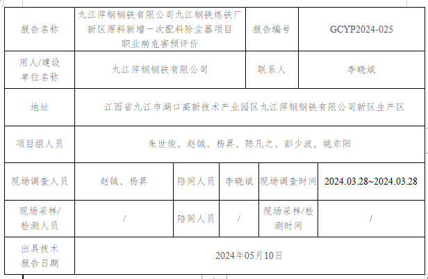 上一篇:九江萍鋼鋼鐵有限公司九江鋼鐵煉鐵廠新區(qū)原料進(jìn)廠系統(tǒng)除塵改造項(xiàng)目 職業(yè)病危害預(yù)評(píng)價(jià)GCYP2024-024