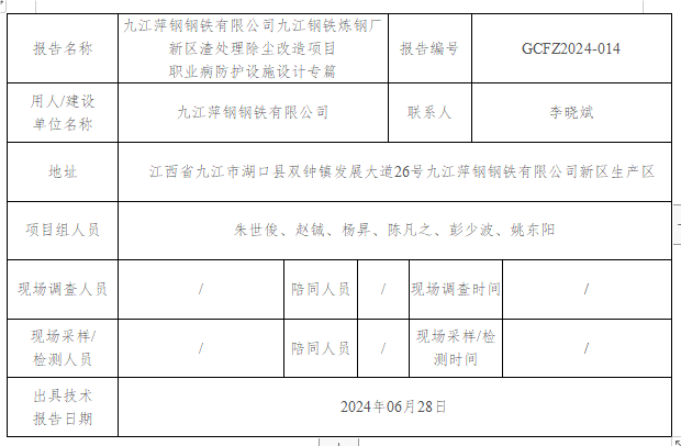 上一篇:九江萍鋼鋼鐵有限公司九江鋼鐵煉鋼廠老區(qū)渣處理除塵改造項(xiàng)目 職業(yè)病防護(hù)設(shè)施設(shè)計(jì)專篇GCFZ2024-013