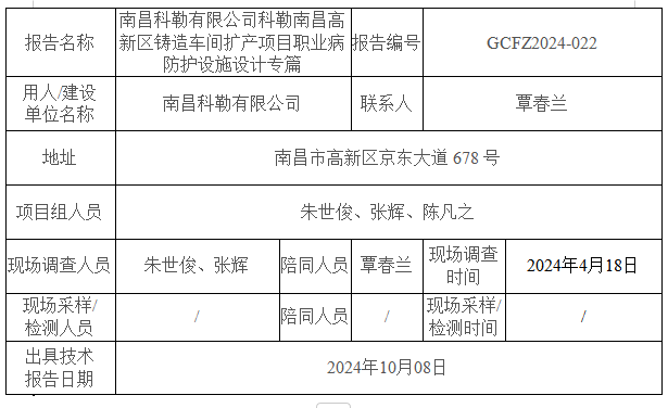 上一篇:江西乾照半導(dǎo)體科技有限公司 海信乾照江西半導(dǎo)體基地項(xiàng)目 職業(yè)病危害控制效果評(píng)價(jià)報(bào)告書GCKP2024-030