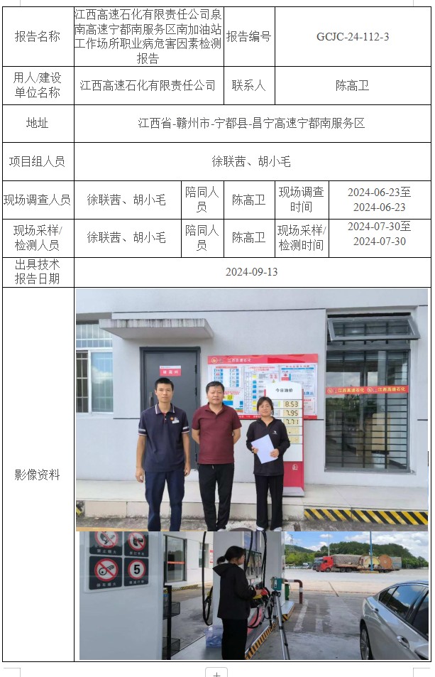 下一篇:江西高速石化有限責(zé)任公司泉南高速寧都南服務(wù)區(qū)北加油站工作場所職業(yè)病危害因素檢測報告GCJC-24-112-4