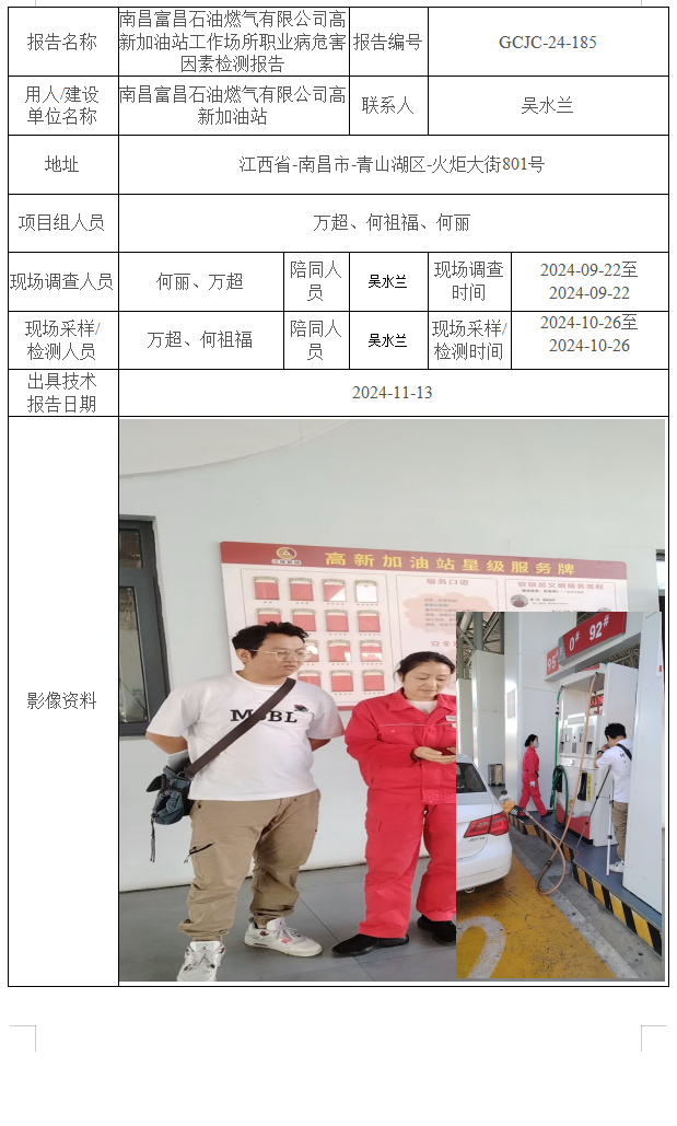 南昌富昌石油燃氣有限公司高新加油站工作場所職業(yè)病危害因素檢測報告