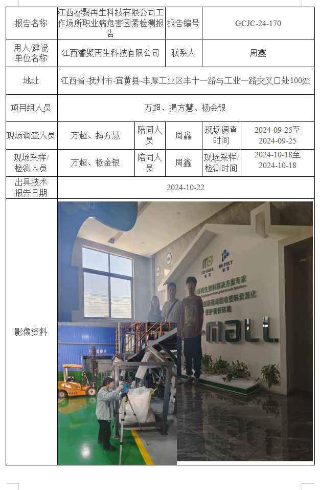 下一篇:江西樂平萬年青水泥有限公司工作場(chǎng)所職業(yè)病危害因素檢測(cè)報(bào)告