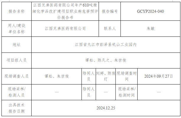 上一篇:江西兄弟醫(yī)藥有限公司 年產(chǎn)20000噸苯二酚、31100噸苯二酚衍生物建設項目(二期:苯二酚) 職業(yè)病危害控制效果評價報告書