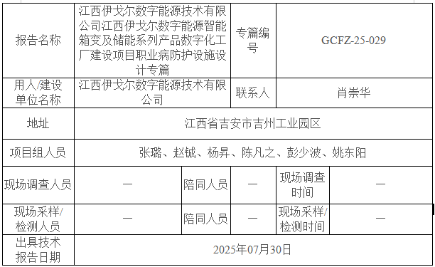 江西伊戈?duì)枖?shù)字能源技術(shù)有限公司江西伊戈?duì)枖?shù)字能源智能箱變及儲(chǔ)能系列產(chǎn)品數(shù)字化工廠建設(shè)項(xiàng)目職業(yè)病防護(hù)設(shè)施設(shè)計(jì)專篇