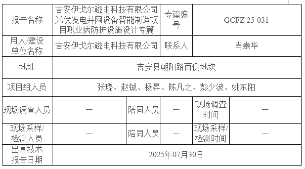 吉安伊戈?duì)柎烹娍萍加邢薰?光伏發(fā)電并網(wǎng)設(shè)備智能制造項(xiàng)目職業(yè)病防護(hù)設(shè)施設(shè)計(jì)專篇